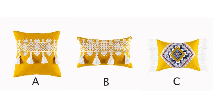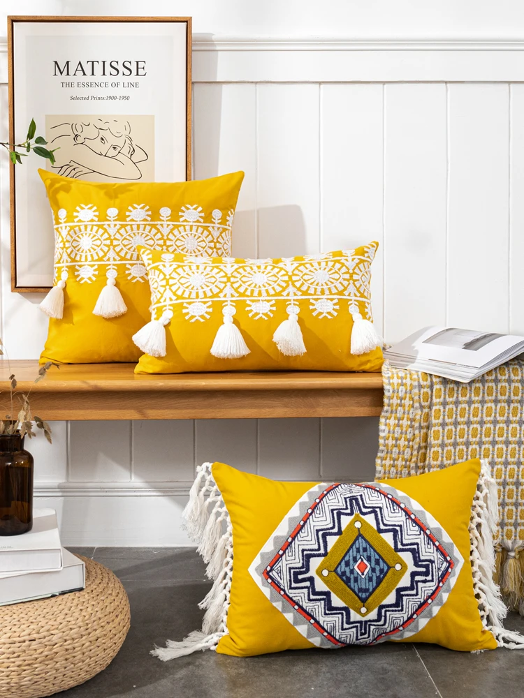 Mustard Yellow Cushion Cover 45x45/30x50cm Boho Style Gold Embroidered Cotton Pillow Cover For Living Room Sofa Chair